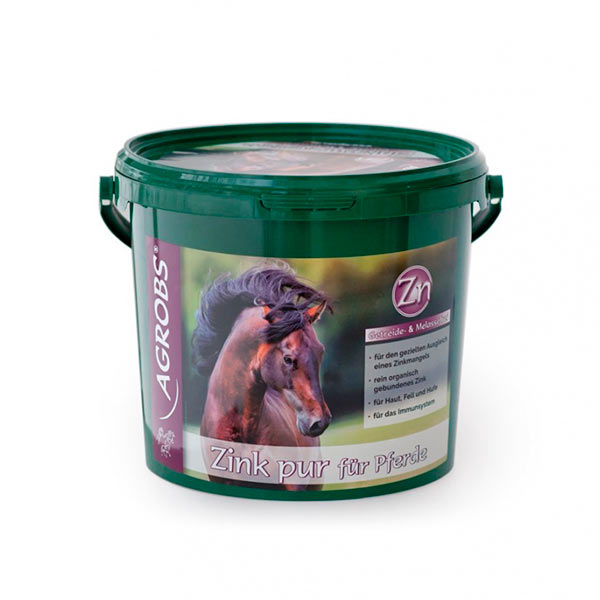 Mit AGROBS Zink pur kann ein Zinkmangel sinnvoll ausgeglichen werden. Zink pur liefert hochverfügbares organisch gebundenes Zink, das optimal vom Körper verwertet werden kann. Die ausgewählte Zusammensetzung mit warmluftgetrockneten Wiesengräsern und -kräutern sowie Leinsamen macht Zink pur besonders schmackhaft und wird auch von mäkeligen Pferden gerne angenommen.