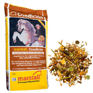 Obsttrester (Apfel), getrocknet (62,10 %), Luzernegrünmehl (6,30 %), Haferschälkleie (6,30 %), Gerste (5,90 %), Zuckerrohrmelasse (5,00 %), Melasseschnitzel (5,00 %), Mais (5,00 %), Calciumcarbonat (3,40 %)