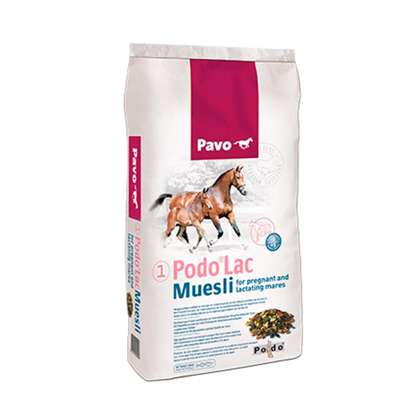Während der Trächtigkeits- und Laktationsperiode benötigt deine Stute ausreichend Energie und Proteine. Pavo Podo®Lac Müsli enthält einen hohen Anteil an Energie aus der einzigartigen und sehr wertvollen Energiequelle Reiskleie, ergänzt durch Sojaöl und Leinöl. Als hochwertige Proteinquelle wurden Sojamehl und Sojaflocken zugesetzt. Die Kombination aus dem hohen Fett- und Eiweißgehalt sorgt dafür, dass deine Stute während der Trächtigkeit und Laktation ihren gesunden körperlichen Zustand beibehält. Der hohe Anteil an hochwertigen Eiweißen im Pavo Podo®Lac Müsli fördert außerdem die Milchproduktion und ist somit auch für eine gute Entwicklung des Fohlens wichtig.