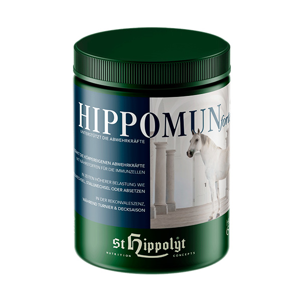 Die körpereigene Abwehrkraft hängt von der Reaktionsfähigkeit und Vermehrungsgeschwindigkeit der Immunzellen ab. Hippomun forte liefert bewährte Nähr- und Funktionsstoffe wie β-Glucane, Nukleotide, Lysin und Traubenkernmehl für ein starkes Immunsystem. Pferde können dadurch widerstandsfähiger, leistungsfähiger und nervlich belastbarer werden.
