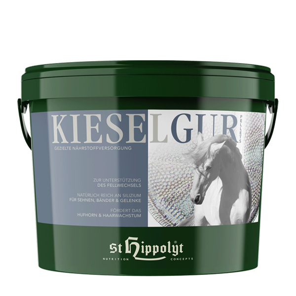Kieselgur ist ein maritimes, urzeitliches Naturprodukt, das hauptsächlich aus Kieselsäure besteht. Kieselsäure enthält einen hohen Anteil an Silizium, einem Spurenelement, das im Körper hauptsächlich in den Bindegewebszellen von Haut, Haaren und Knorpeln vorkommt und für Struktur und festen Halt maßgeblich verantwortlich ist. Der Organismus kann Silizium nicht selbst bilden, daher muss es über die Fütterung zugeführt werden. Zusätzlich sind Bierhefe und hochwertige Pflanzenöle enthalten. Bierhefe ist ein wichtiger natürlicher Lieferant von lebenswichtigen B-Vitaminen und verbessert das Ernährungsniveau. Die Ölmischung sorgt für einen seidigen Fellglanz.