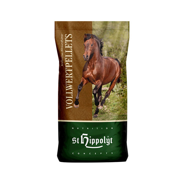 Der Vollwertpellet ist als alleinige Ergänzung zu Heu und Stroh konzipiert. Aufgrund seiner außergewöhnlich guten Verträglichkeit und Vielfalt an Nähr- und Vitalstoffen ist er für den Erhaltungs- und Leistungsbedarf von Pferden aller Rassen und Einsatzgebiete bestens geeignet. Der Vollwertpellet ist haferfrei, um temperamentvollen Pferden entgegenzukommen, kann aber gerne auch mit Hafer oder Müsli gefüttert werden.