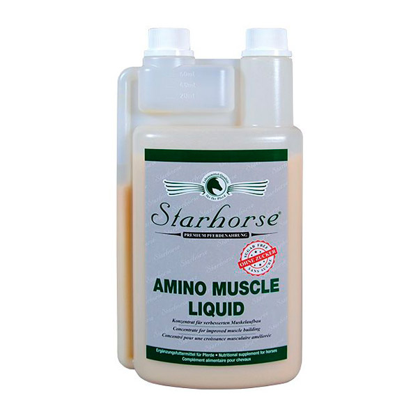 Amino Muscle Liquid unterstütz und fördert einen raschen und gezielten Aufbau von Muskelzellen. Amino Muscle Liquid kann durch seine spezifisch optimale Zusammensetzung schon kurz nach der Fütterung vom Organismus des Pferdes aufgenommen werden und bildet somit die beste Basis für ein optimales Muskelwachstum. Da das Produkt 100% zuckerfrei ist beeinflusst es den Energiehaushalt von Pferden kaum. Amino Muscle eignet sich daher auch bestens zur Fütterung von Pferde mit viel Temperament. Weiters verkürzt Amino Muscle Liquid die Regenerationsphase bei Sportpferde, steigert die Libido sowie die Spermabildung bei Deckhengste und fördert die Qualität und Menge von Kolostrum (Erstlingsmilch) bei Zuchtstuten.