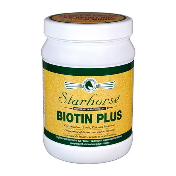 Biotin Plus von Starhorse unterstützt durch seine hohe Dosierung, sowie dem Umstand der Lebensmittelqualität (hohe Aufnahmefähigkeit), eine ausreichende Versorgung an Biotin, Zink und Methionin. Durch die Beigabe von Vanillearoma und dem leicht süßen Geschmack wird Biotin Plus von allen Pferden sehr gerne angenommen.