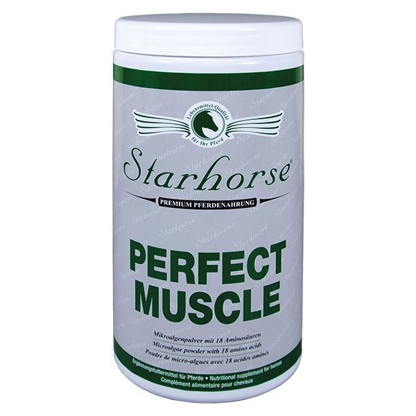 Starhorse Perfect Muscle besteht vorwiegend aus hochwertigem Mikroalgenpulver, welches unter anderem 18 Aminosäuren sowie einen natürlichen Gehalt an Mineralien, Vitaminen und ungesättigten Fettsäuren enthält. Durch seine ausgewogene Zusammensetzung unterstützt Starhorse Perfect Muscle den Muskelaufbau sowie die Leistungsbereitschaft optimal und verfügt über eine hohe biologische Verfügbarkeit. StarhorsePerfect Muscle eignet sich als Muskelaufbaupräparat für Sportpferde, Pferde im Aufbautraining, schwach bemuskelte Pferde sowie in der Zucht.