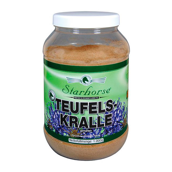 Die Teufelskralle (lat. Harpagophytum procumbens) kommt überwiegend in Namibia sowie in Süd- und Ostafrika vor. Man spricht dieser Wurzel schmerzlindernde und entzündungshemmende Wirkung zu. Bei Pferden wird Teufelskralle hauptsächlich bei Arthrosen, welche von Schmerzen und Entzündungen begleitet sind, gefüttert.